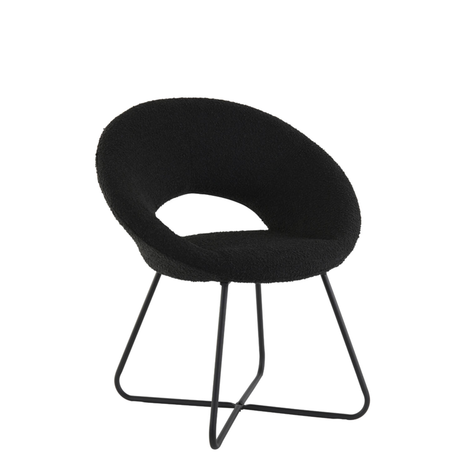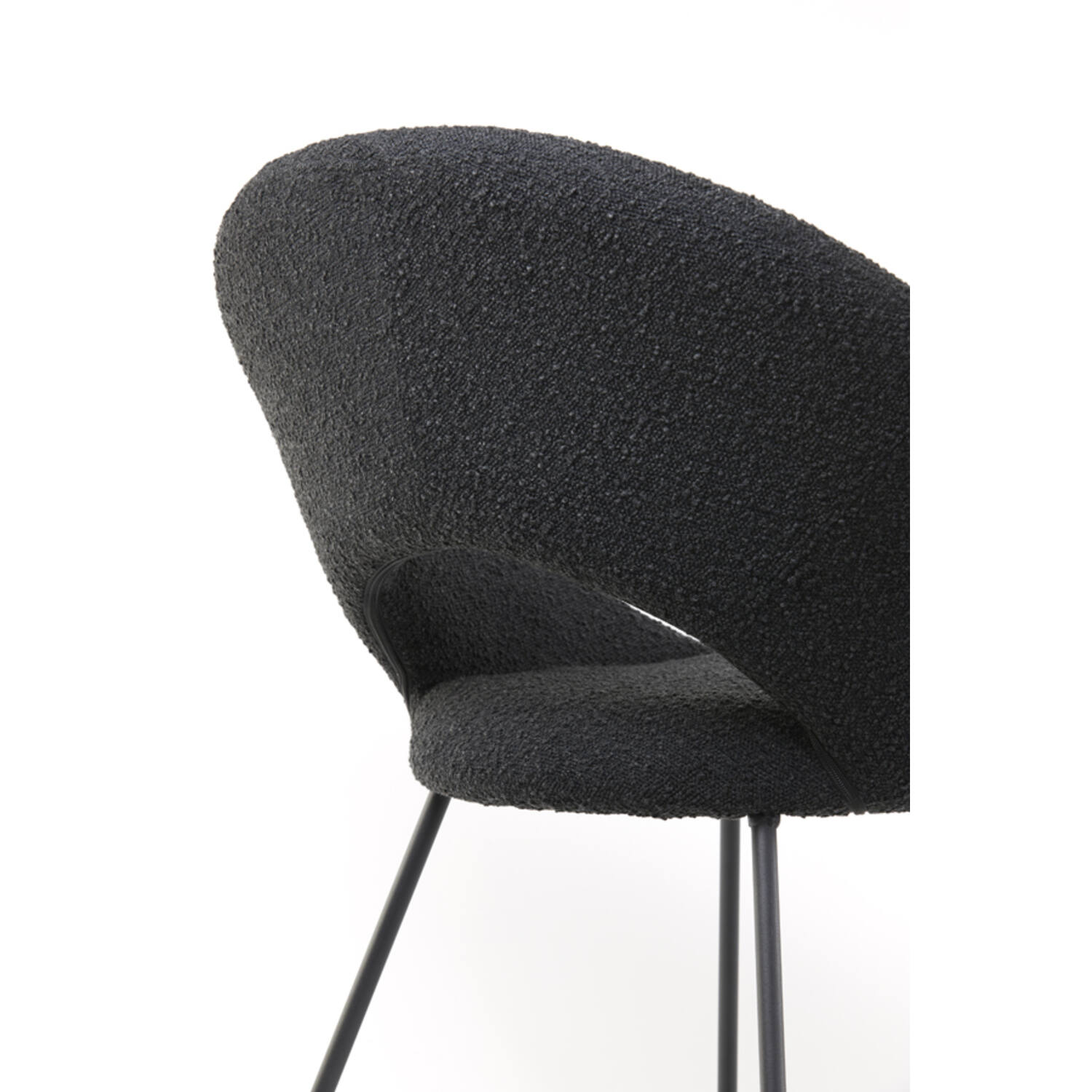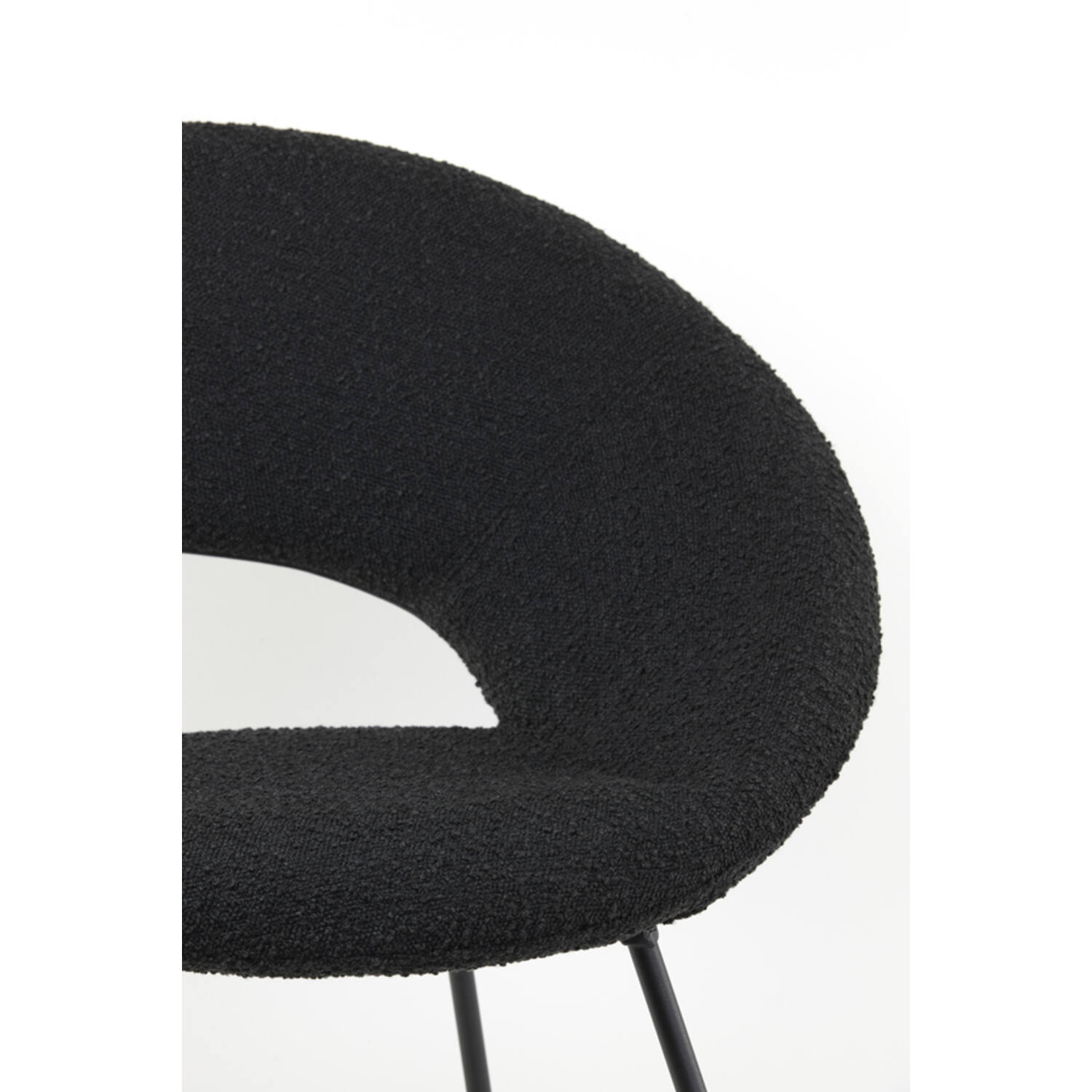 Der Stuhl besticht durch sein modernes, minimalistisches Design, das perfekt in zeitgemäße Wohnräume passt. Der Bezug aus weichem Stoff, verleiht ihm eine elegante und zugleich gemütliche Ausstrahlung. Die geschwungene Rückenlehne sorgt für zusätzlichen Komfort, während das offene Design im Rückenbereich einen leichten, luftigen Eindruck vermittelt.