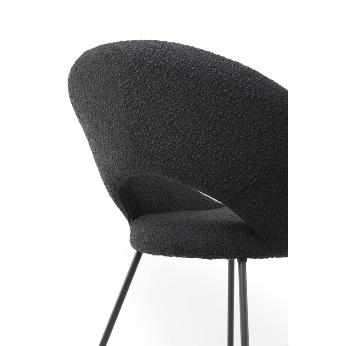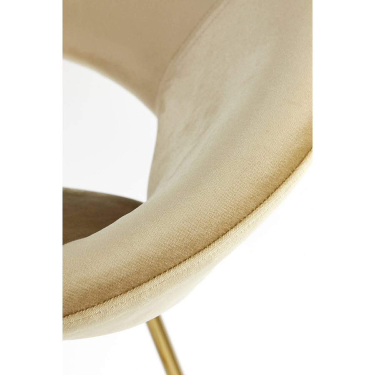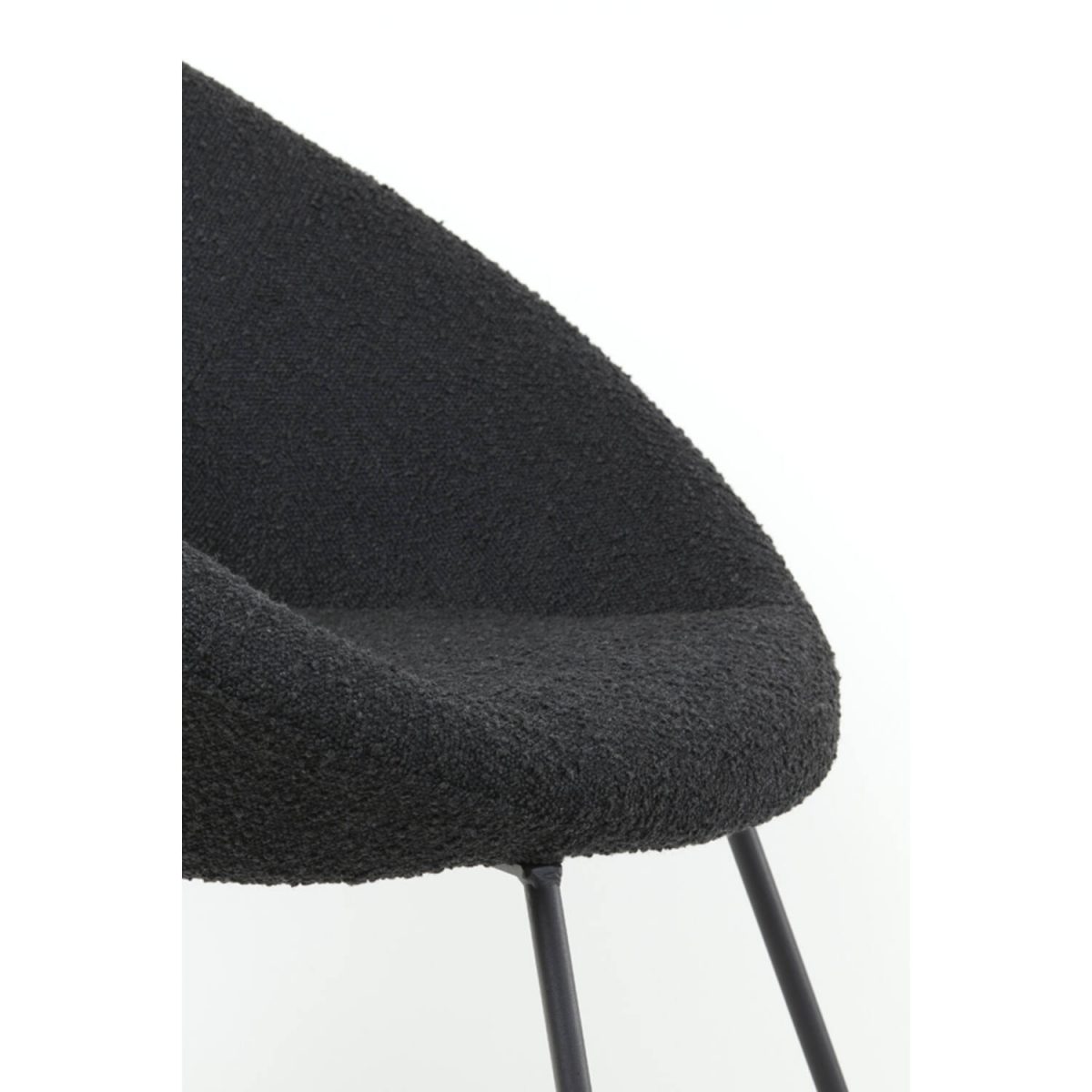 Der Stuhl besticht durch sein modernes, minimalistisches Design, das perfekt in zeitgemäße Wohnräume passt. Der Bezug aus weichem Stoff, verleiht ihm eine elegante und zugleich gemütliche Ausstrahlung. Die geschwungene Rückenlehne sorgt für zusätzlichen Komfort, während das offene Design im Rückenbereich einen leichten, luftigen Eindruck vermittelt.