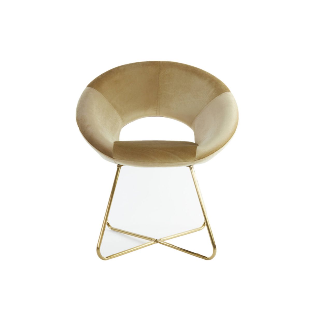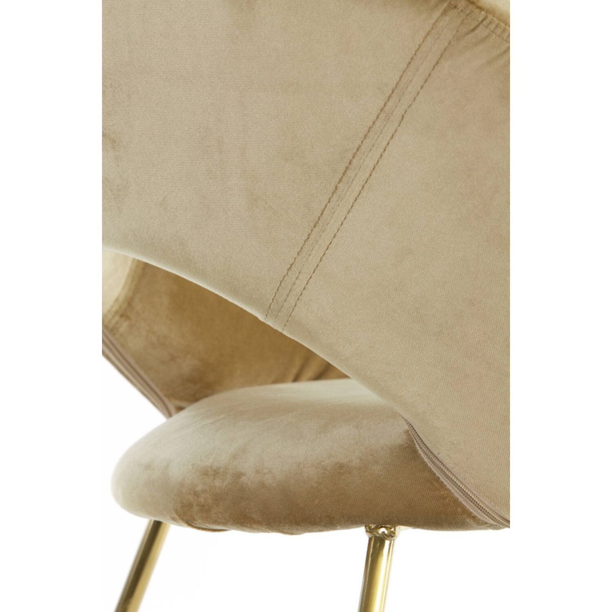 Getragen wird der Stuhl von einem filigranen Metallgestell, das dem Gesamtbild Stabilität und einen modernen Look verleiht. Dieser Stuhl eignet sich ideal für Esszimmer, Wohnzimmer oder Büroecken und bietet sowohl Stil als auch Bequemlichkeit.