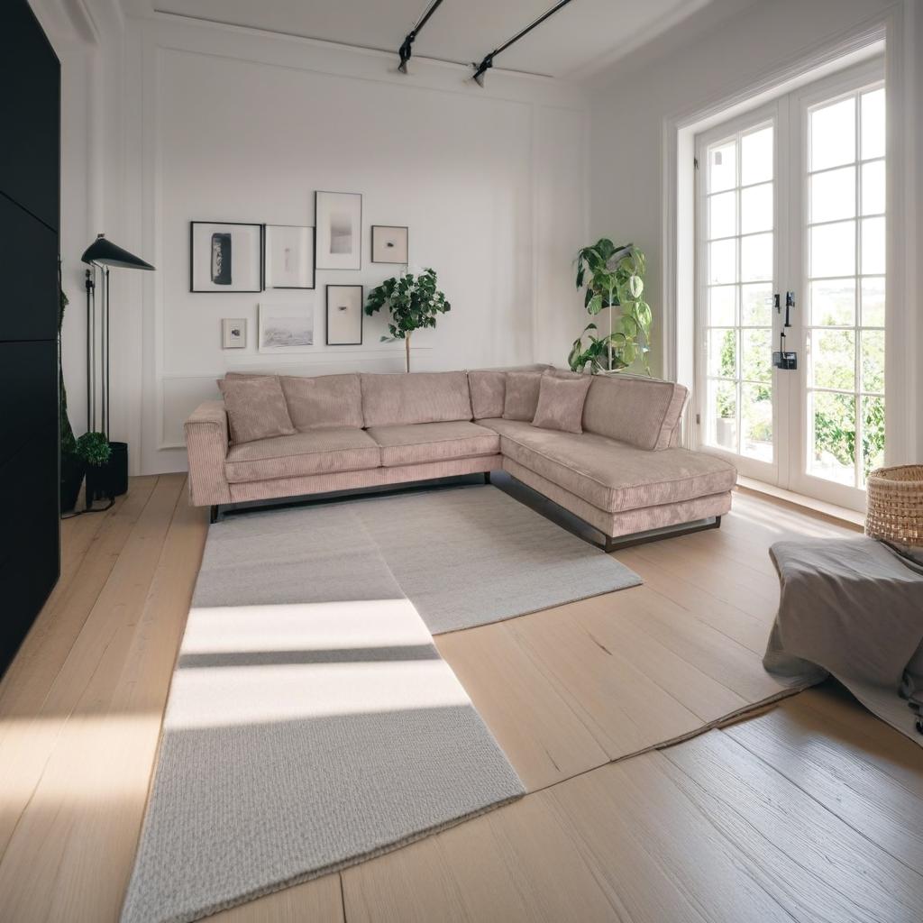 Das Ecksofa “Brugge” vereint modernes Design mit hohem Komfort und ist ideal für großzügige Wohnbereiche. Mit seinen Maßen von 2700 x 1920 x 810 mm bietet es reichlich Platz zum Entspannen. Die Polsterung ist auf Komfort ausgelegt, bestehend aus einer Nosag-Wellenunterfederung und hochwertigem Schaumstoff, der zusätzlich mit Polyesterwatte gepolstert ist.
