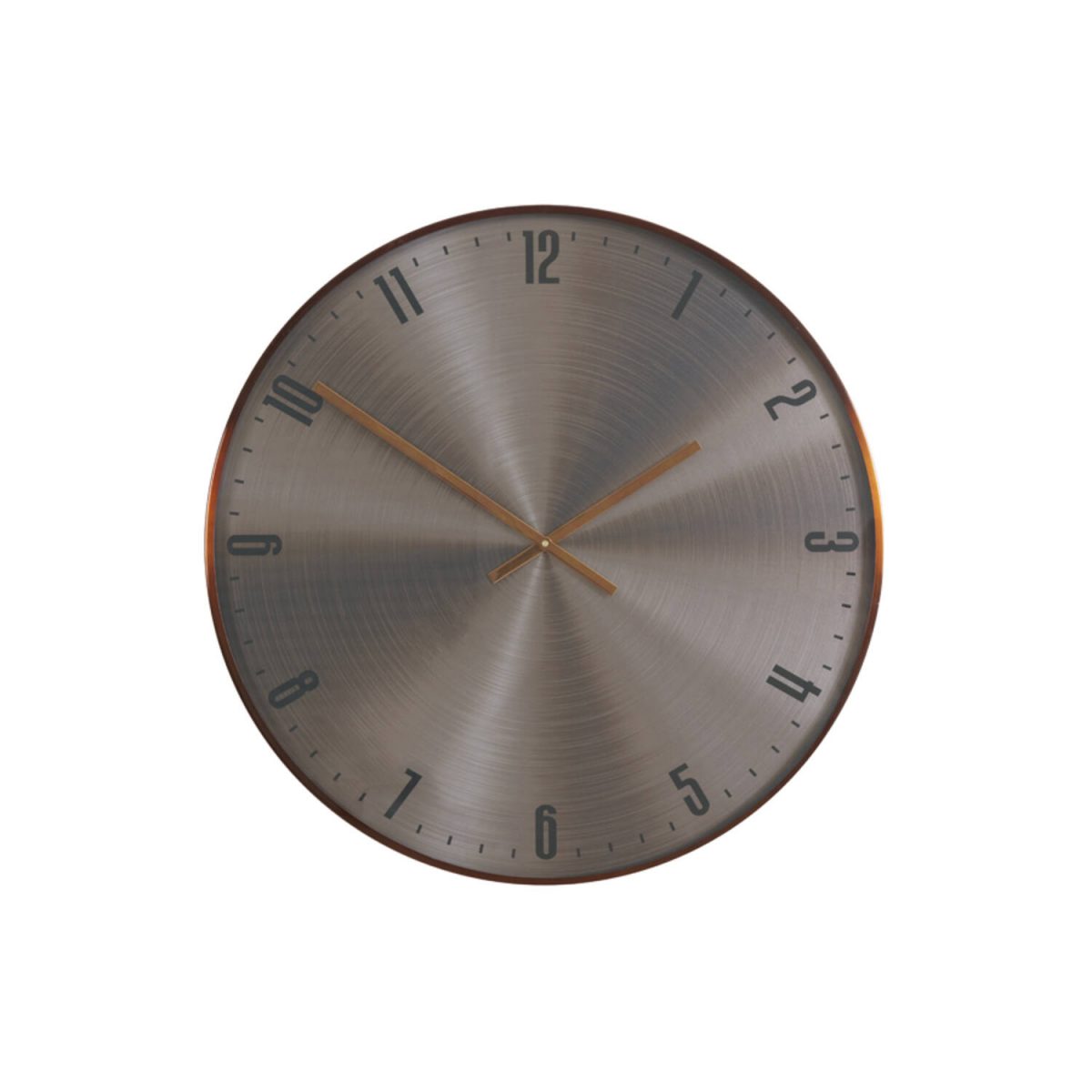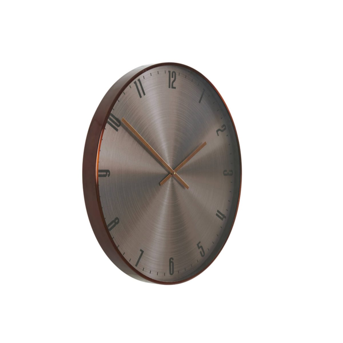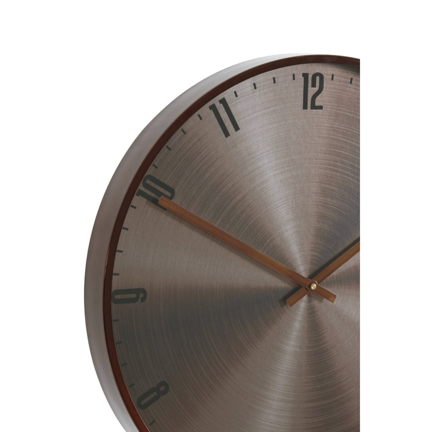 Die Zahlen der IPERA Uhr sind dezent, aber gut lesbar in einem dunklen Farbton gehalten, was einen ansprechenden Kontrast zur metallischen Oberfläche bietet. Die schmalen, Bronzefarbenden Zeiger fügen sich harmonisch in das Gesamtbild ein und unterstreichen die elegante Schlichtheit der Uhr. Diese Wanduhr ist ein stilvolles Accessoire für moderne Wohnräume und bringt zeitlose Eleganz an jede Wand.