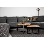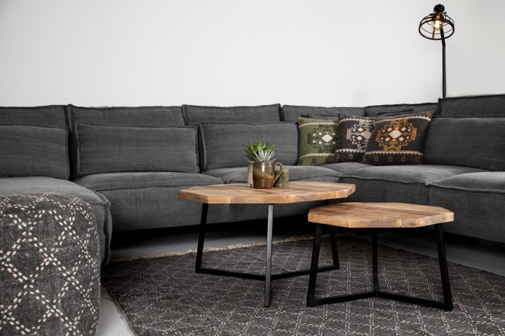 Das zweiteilige Couchtisch-Set Urban besticht durch seine achteckigen Tischplatten aus massivem Mangoholz und Gestelle aus massivem Eisen. Es besteht aus zwei Tischen verschiedener Höhen, die auch einfach untereinandergeschoben werden können. Die Couchtische werden handgefertigt. Dadurch ist keiner der Tische genau gleich und kleine Unvollkommenheiten können entstehen. Diese unterstreichen den individuellen Charakter und die Authentizität der Tische.