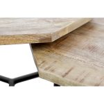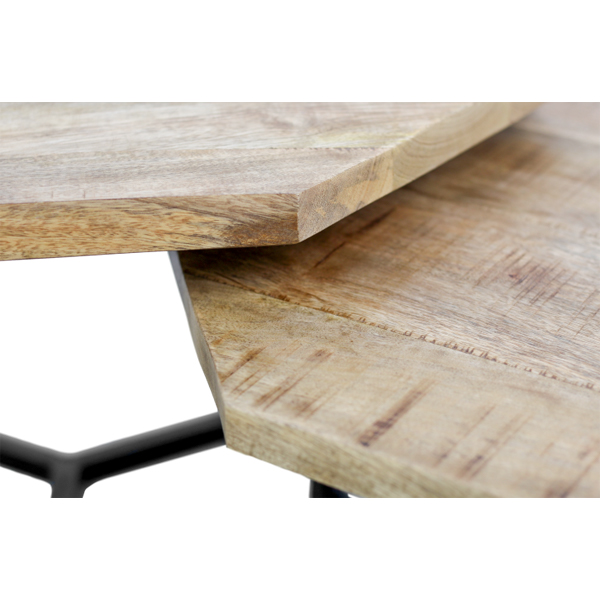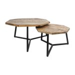 Das zweiteilige Couchtisch-Set Urban besticht durch seine achteckigen Tischplatten aus massivem Mangoholz und Gestelle aus massivem Eisen. Es besteht aus zwei Tischen verschiedener Höhen, die auch einfach untereinandergeschoben werden können.